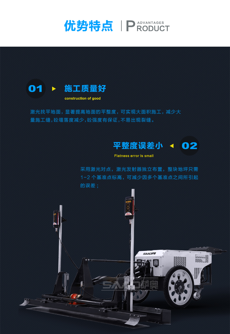 3.用來控制地面標(biāo)高的激光發(fā)射器是獨立布置的,地坪標(biāo)高不受模板控制,且不會產(chǎn)生累積誤差。