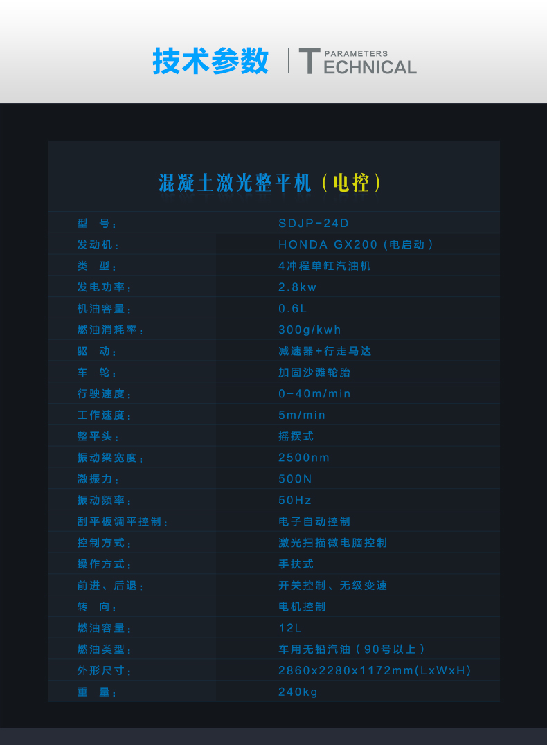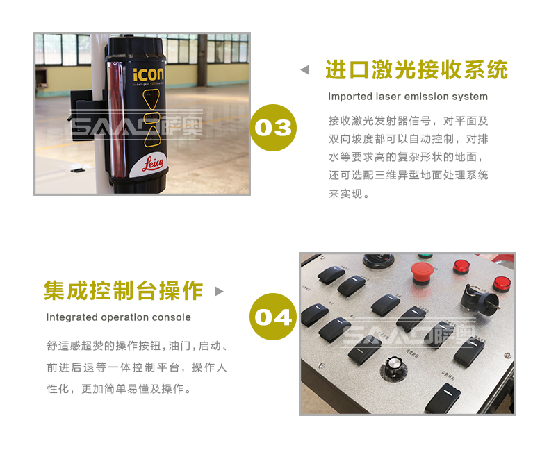 手扶式電控激光整平機是原裝進口激光發(fā)射接收系統(tǒng),兩種輪胎可選,本田汽油動力,控制面板多樣化。