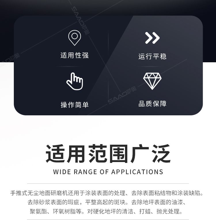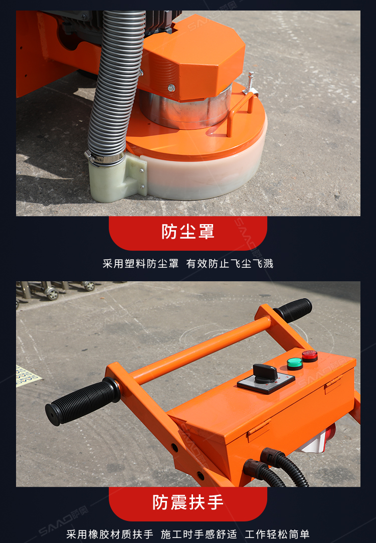 SYM-330B手推式無塵地面研磨機(jī),是集研磨和吸塵為一體的先進(jìn)的路面機(jī)器,邊打磨邊吸塵,為我們提供良好的無塵打磨環(huán)境。特別是在地面混凝土強(qiáng)度低的情況,如果配上砂紙磨片,也可以打磨環(huán)氧膩子層;同時對環(huán)氧膩子層的磨損小,提高環(huán)氧地面的平整度。