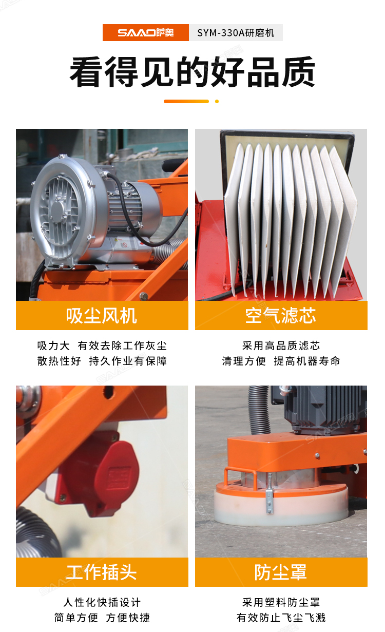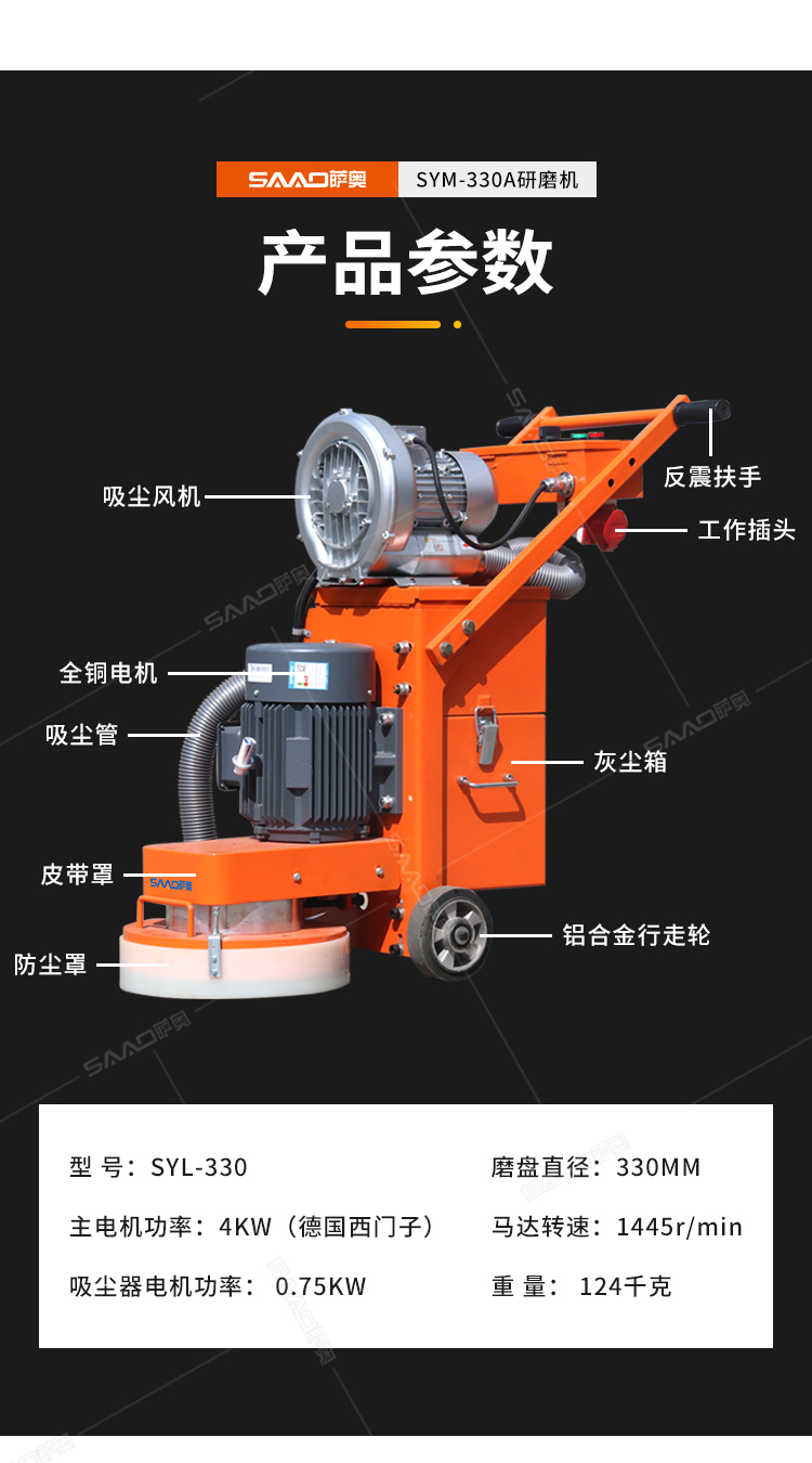 SYM-330手推式無塵地面研磨機(jī),是集研磨和吸塵為一體的先進(jìn)的路面機(jī)器,邊打磨邊吸塵,為我們提供良好的無塵打磨環(huán)境。特別是在地面混凝土強(qiáng)度低的情況,如果配上砂紙磨片,也可以打磨環(huán)氧膩?zhàn)訉?同時(shí)對環(huán)氧膩?zhàn)訉拥哪p小,提高環(huán)氧地面的平整度。