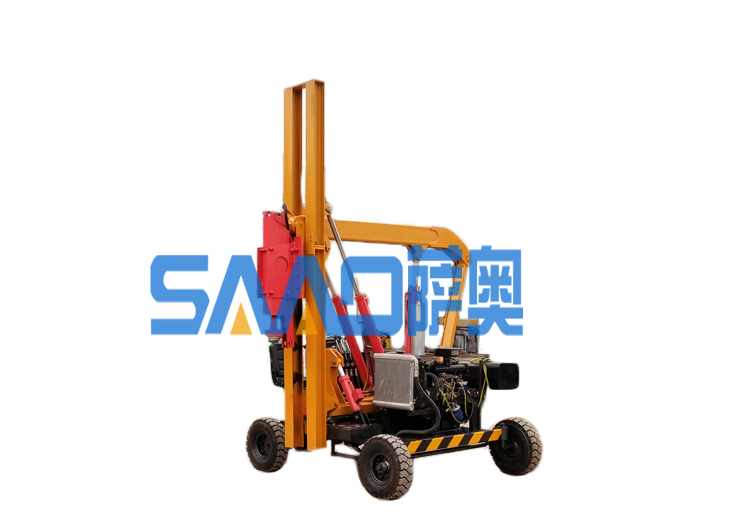 薩奧護欄打樁機采用柴油動力,全液壓機械傳動,具有行駛輕便、打樁精度高、經久耐用、節能環保等特點,特別適用于公路護欄安裝、維修和搶修的野外工程施工。該公路護欄全液壓打樁機由技術研發工程師和現場服務技術員根據各種不同工況環境實戰中的情況,經過不斷的研發和更新,而研發生產的一種優為節能環保的新型全液壓打樁設備,在完成各類復雜地層的公路護欄安裝作業中,充分體現了它高品質、效率高、高節能、高壽命等特點。液壓護欄打樁機具有打樁定位準、移動快、精度高,壽命長、省油環保等優點。是高速公路防護欄的新型設備。