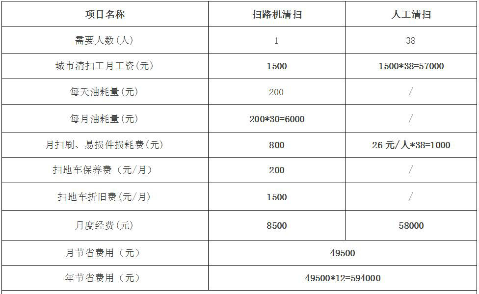 結論:薩奧路面保潔養(yǎng)護清掃機每年可至少節(jié)省費用將近60萬元。