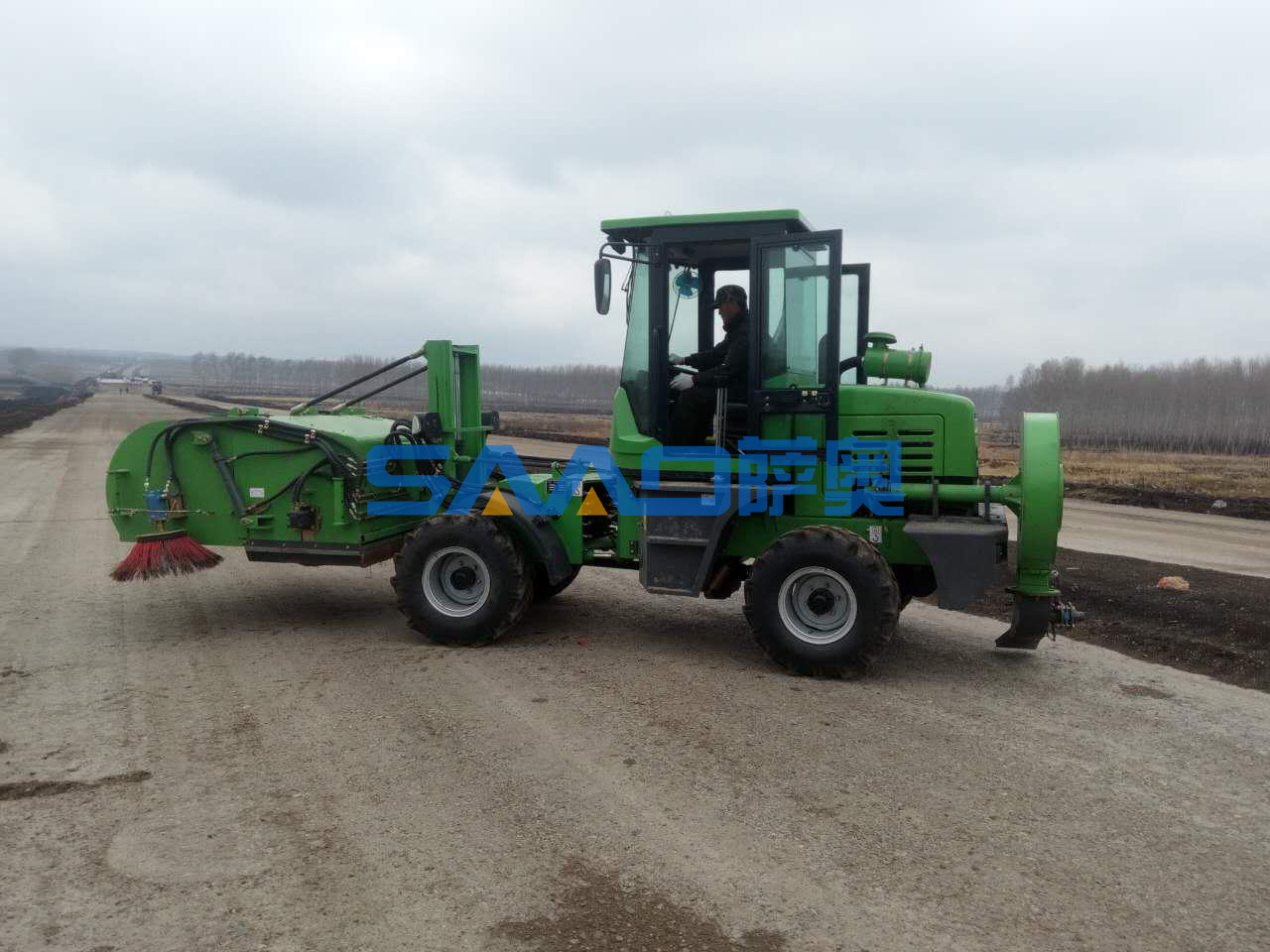 薩奧道路施工強力清掃機(SA160QT),吹掃一體機,動力強勁、垃圾可回收,邊掃邊吹風,一次性徹底解決路面垃圾厚的問題,大容積垃圾箱裝料多,自動掃水降塵、自動卸料,垃圾非常方便裝車,裝車高度3米、自動檔駕駛操作簡單靈活,兩邊盤刷作業(yè)讓死角無殘留,是道路施工路面垃圾清掃設備,專業(yè)用于高速公路、市政建設和路橋建設過程中水穩(wěn)層及銑刨路面的清掃工作。