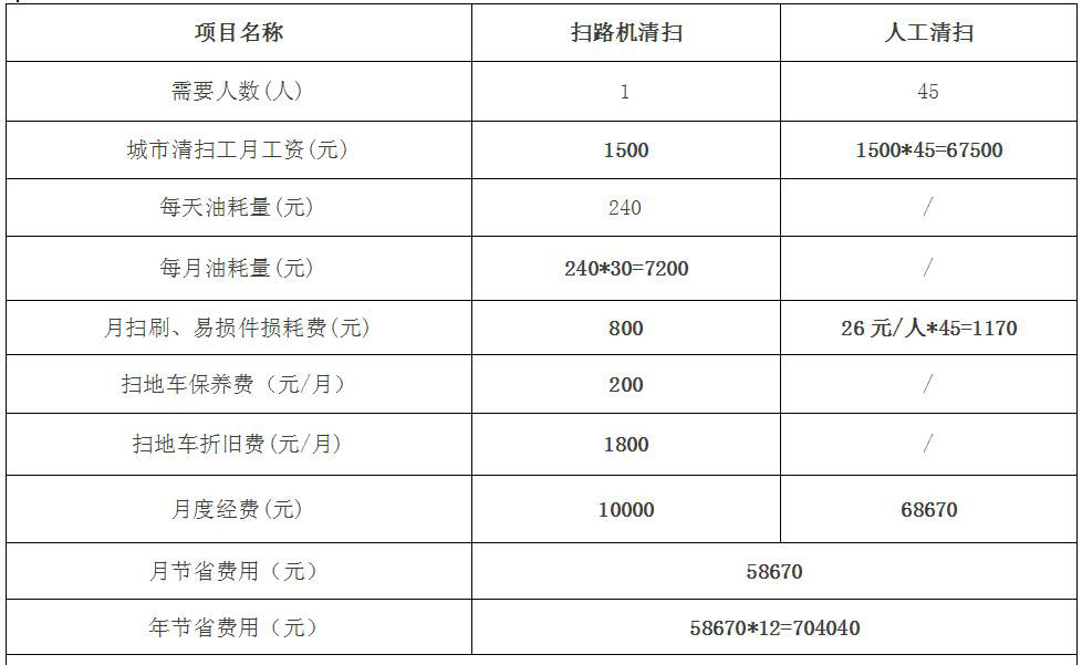 結論:薩奧路面保潔養(yǎng)護清掃機每年可至少節(jié)省費用將近70萬元。