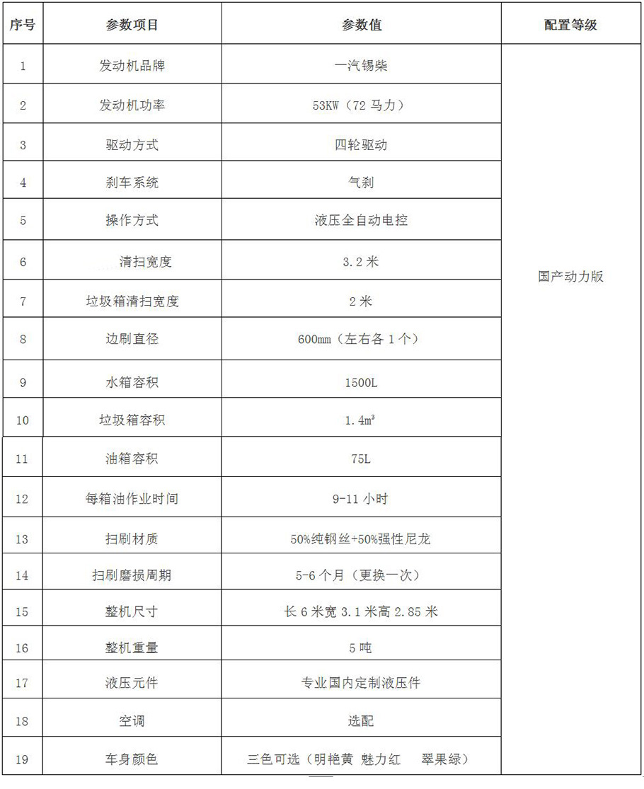 薩奧路面保潔養(yǎng)護清掃機(SA-320Q),高壓水泵噴霧除塵,動力強勁、超大水箱、垃圾可回收,大容積垃圾箱,自動卸料,垃圾自動裝車,裝車高度3米、自動檔駕駛操作簡單靈活,兩邊盤刷作業(yè)讓死角無殘留。一機多用,多裝置快換技術,是道路養(yǎng)護的清掃裝備,廣泛用于國道、省道、縣道及農村公路養(yǎng)護清掃工作。