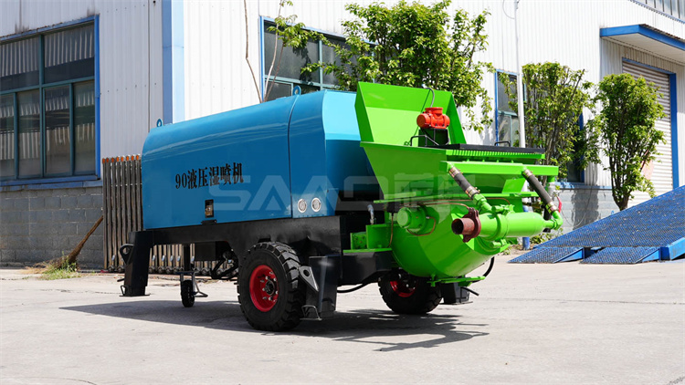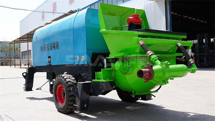液壓濕噴機是利用液壓泵產(chǎn)生的推力,使用兩個油缸往復(fù)交替運動,將稠密流物料由輸送管道送至混流管處,經(jīng)壓縮空氣形成稀薄流 通過管道送至噴頭處,在噴頭加入相應(yīng)比例的速凝劑,直接噴漿到受噴面上的一種機、電、液、三合一的機械設(shè)備,被普遍應(yīng)用于公路、鐵路、隧道、建筑、水電站等工程建設(shè)中。