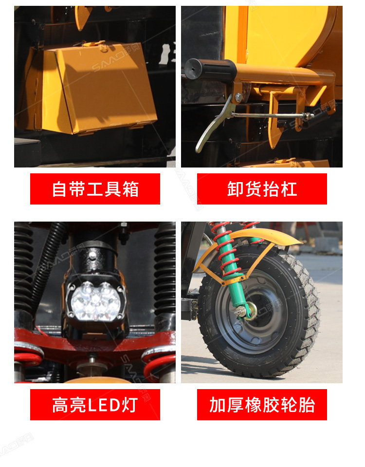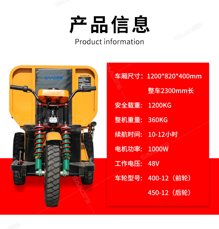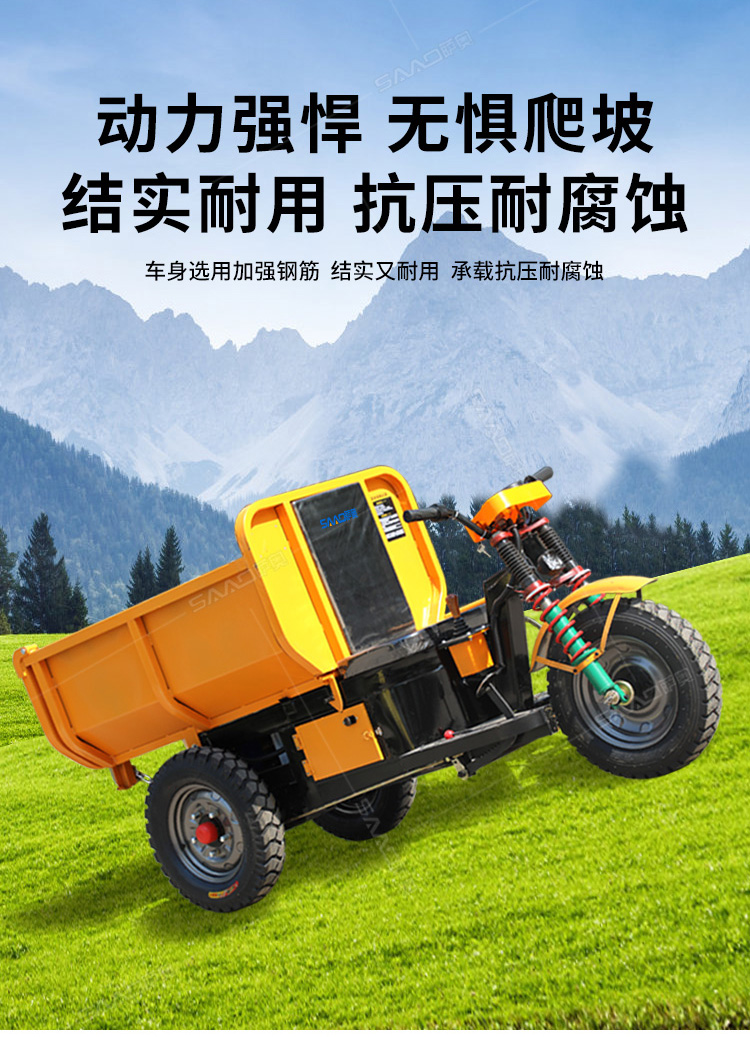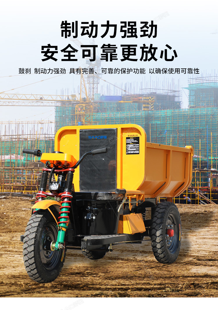 此款車適用于建筑工地、室內裝修、養殖場、工廠等場所,運輸沙子、水泥、土方、混凝土、建筑垃圾生活垃圾、養殖場動物糞便、飼料等,體積小操作簡單靈活,可原地360度轉圈,可