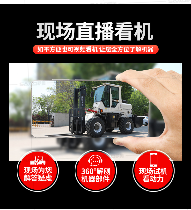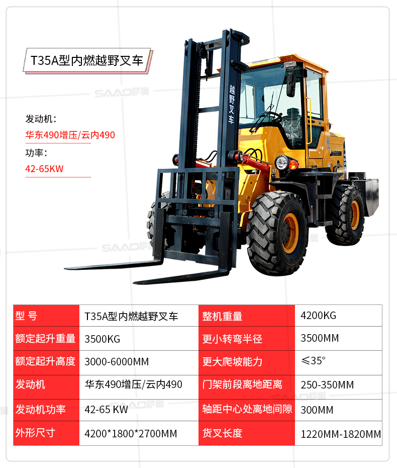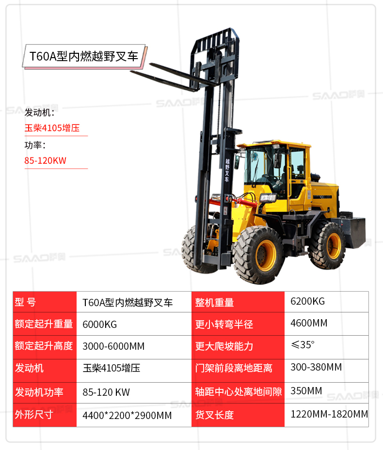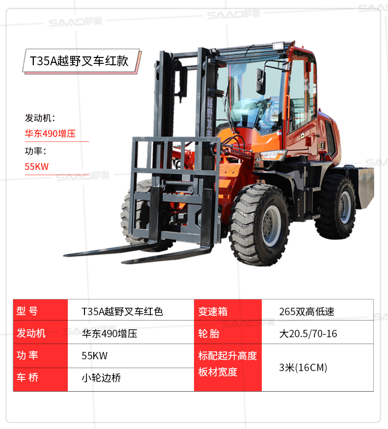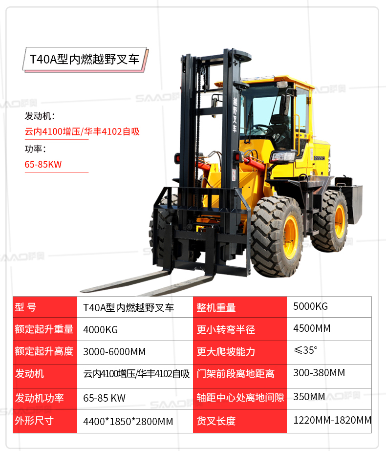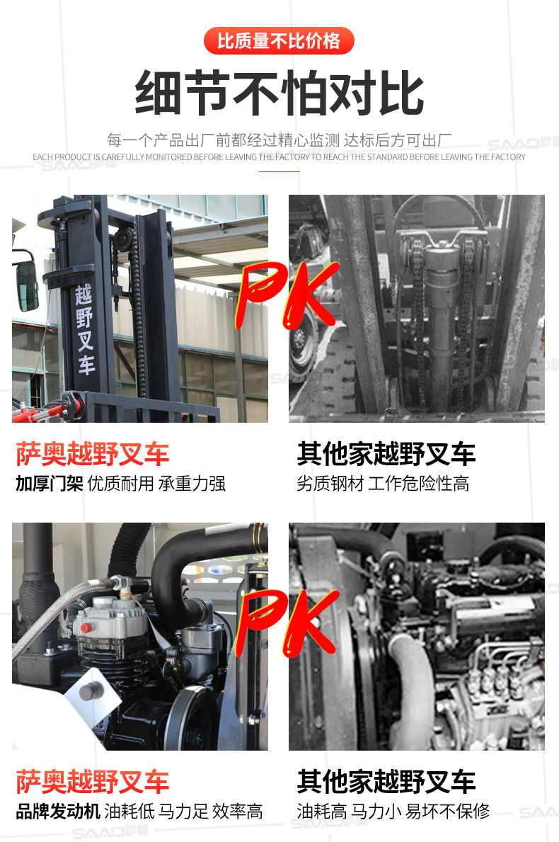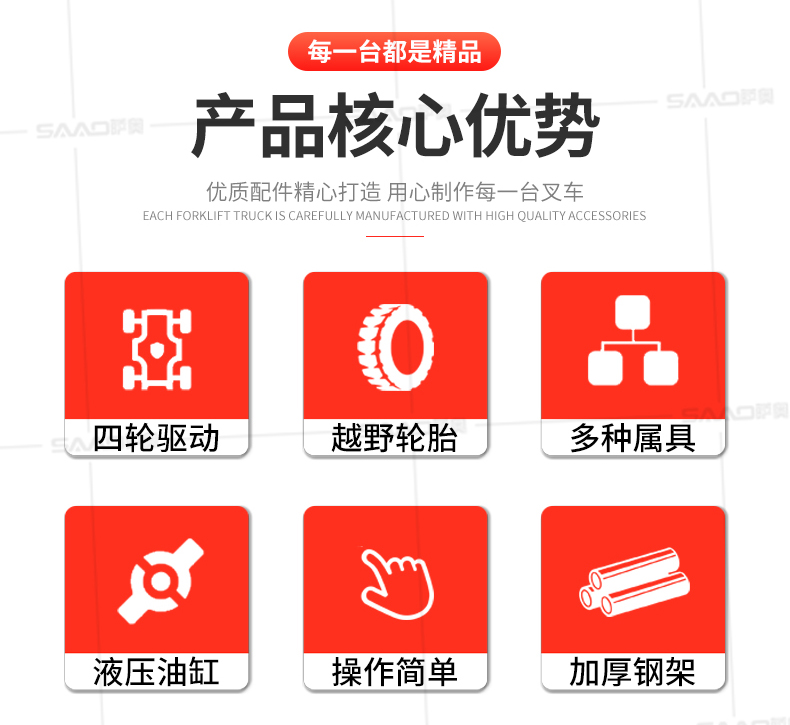 產品介紹: 多功能四驅越野叉車又叫野戰叉車,它具有良好的機動性、越野性可靠性。是一種可以在坡地和不平地面上安全高地進行貨物裝、卸、堆垛及搬運作業的工程車輛平衡叉車一