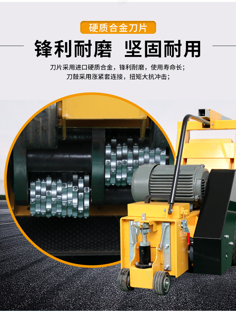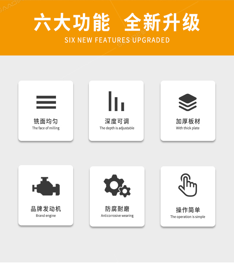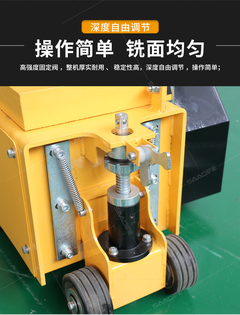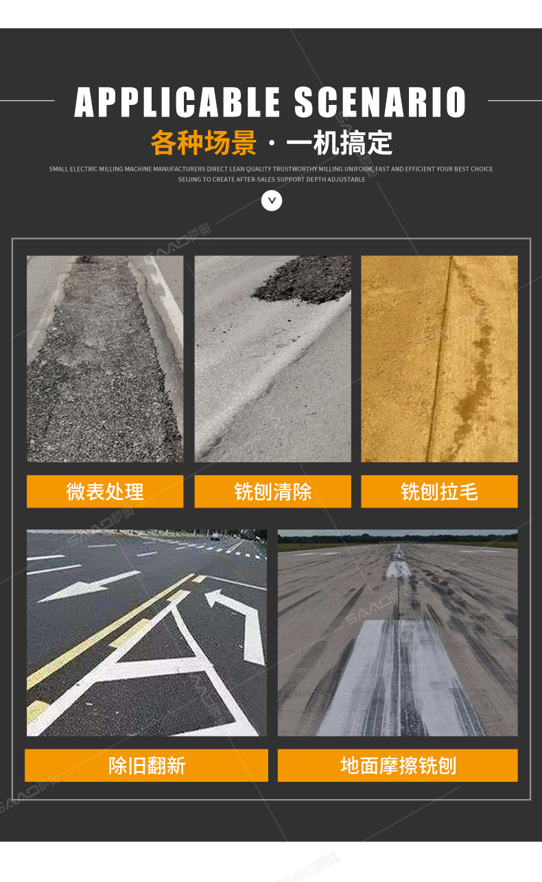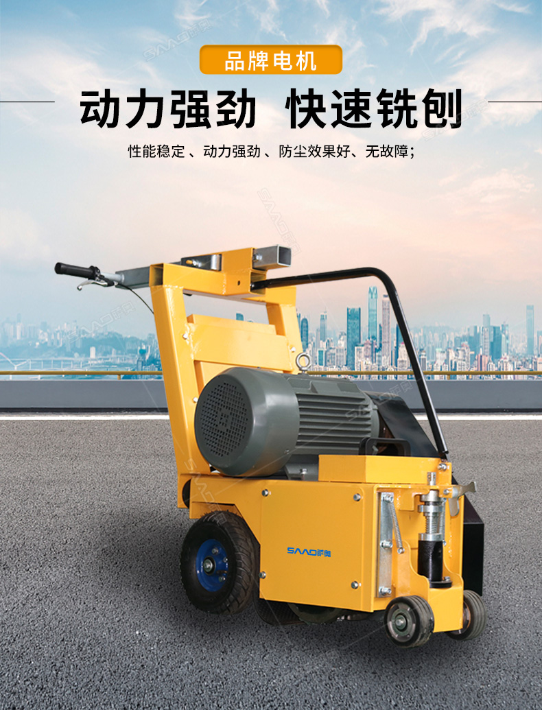 小型電動銑刨機用于橋面鋪設瀝青或車間舊的混凝土地面重新攤鋪混凝土之前,清除水泥浮漿以及鏟平拉毛,也用于清除建筑施工中遺留的堅硬灰渣。