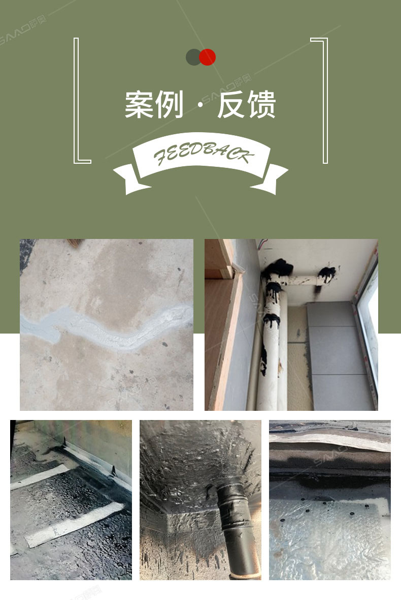 產品特性: 超強修補密封膠是專為防水施工中管根、管口、拐角和裂縫等處防水修復、薄弱易漏點而開發。直接噴涂、噴涂后形成強效橡膠密封保護膜,有效附著于各類表面與材質,直