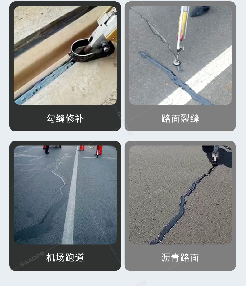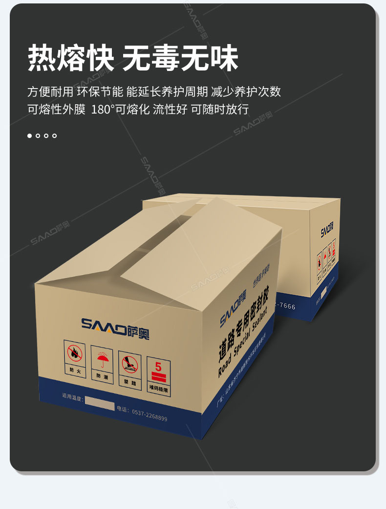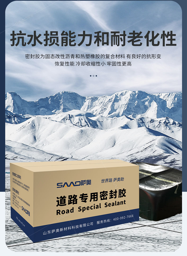 薩奧系列密封膠為固態(tài)改性瀝青和熱塑橡膠的復(fù)合材料,熱熔快,粘接性強(qiáng),具有良好的抗形變恢復(fù)性能。與其它類型密封膠相比,該類型具有低稠度,易于滲入各種裂縫等特點。在夏季,其高溫軟化點可達(dá)96℃;在冬季,其耐低溫可達(dá)近似-23℃,因此更適合在溫差跨度大的溫帶環(huán)境。
