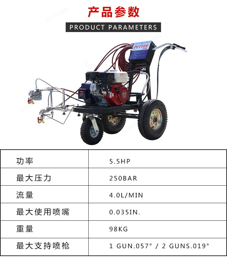 產品介紹: 冷噴劃線機是常溫標線施工的專用設備,噴出的線型清晰、流暢、飽滿、均勻,主要用于公路、停車場、機場、加油站、公司廠區等涂畫直線、虛線、曲線、斑馬線、文字、