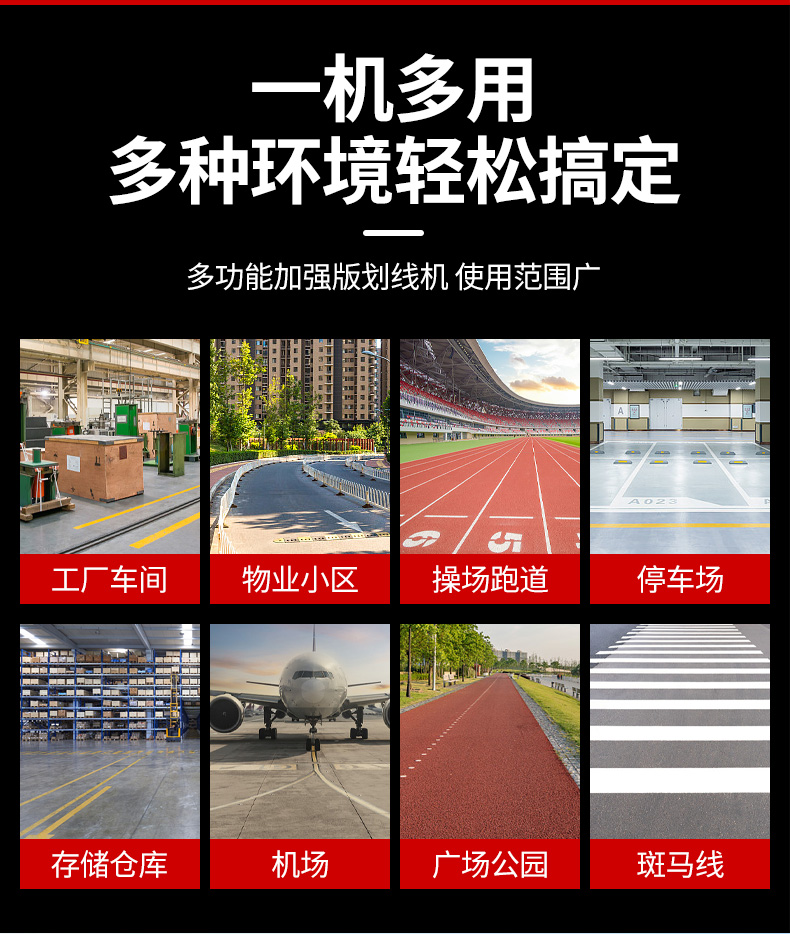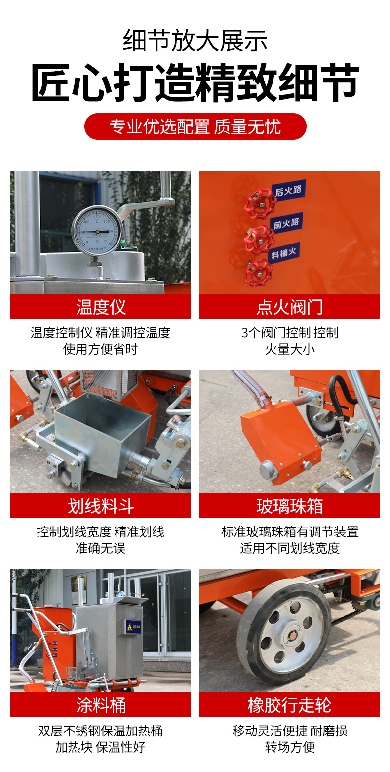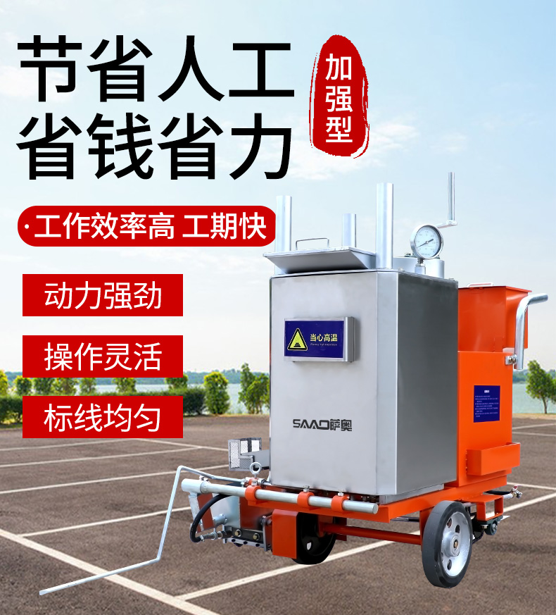 一:產(chǎn)品用途 多功能熱熔劃線機(jī)是我公司根據(jù)市場(chǎng)需求,獨(dú)立研發(fā)生產(chǎn)的一款新型劃線機(jī),該機(jī)集熔料與劃線一體,可獨(dú)立完成各類線型的施劃。對(duì)工程量較小零散復(fù)雜的停車位、場(chǎng)區(qū)