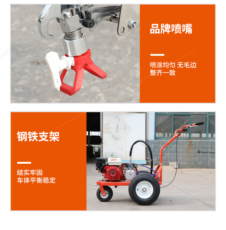 小型手推式道路劃線機是一種在道路、停車場、廣場和跑道等平整地面上劃出不同約束、指引和警示等規則限制標志的路面施工機械。最常見的就是在馬路上劃斑馬線,在路上劃車庫線