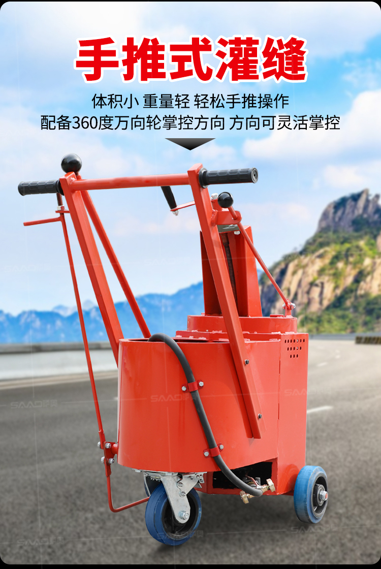 這款灌縫機(jī)是小型的手推灌縫機(jī),也叫灌縫寶。主要用于路面裂縫灌縫修補(bǔ)及混凝土收縮縫灌縫填充時(shí)輔助灌縫施工。