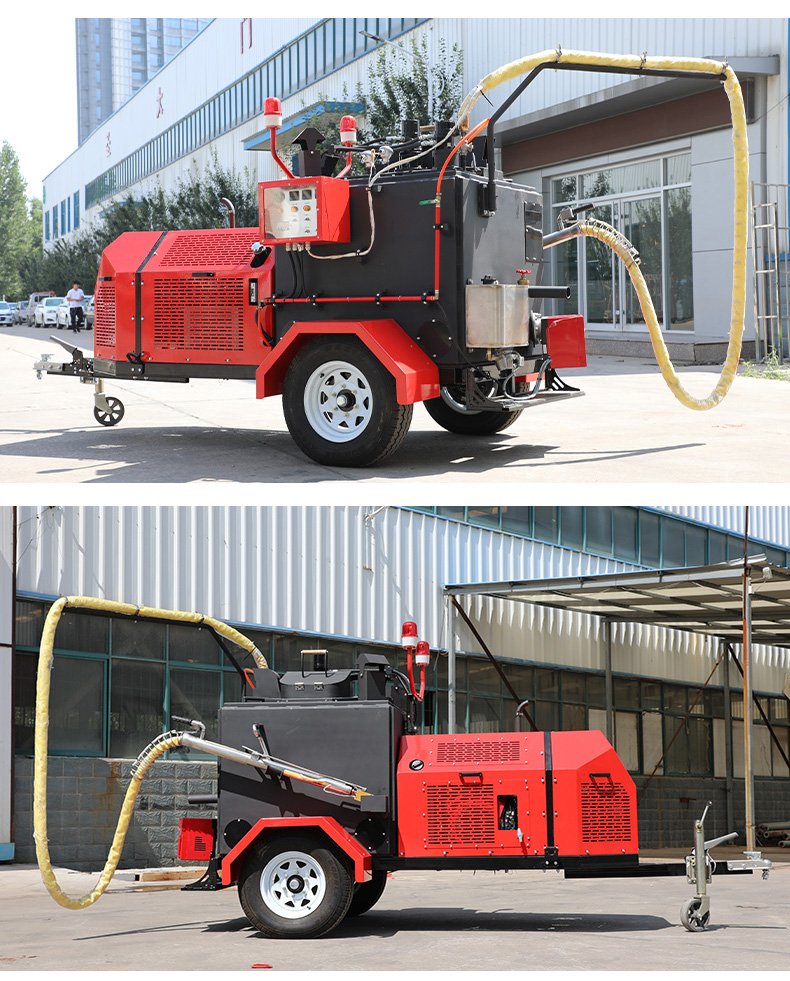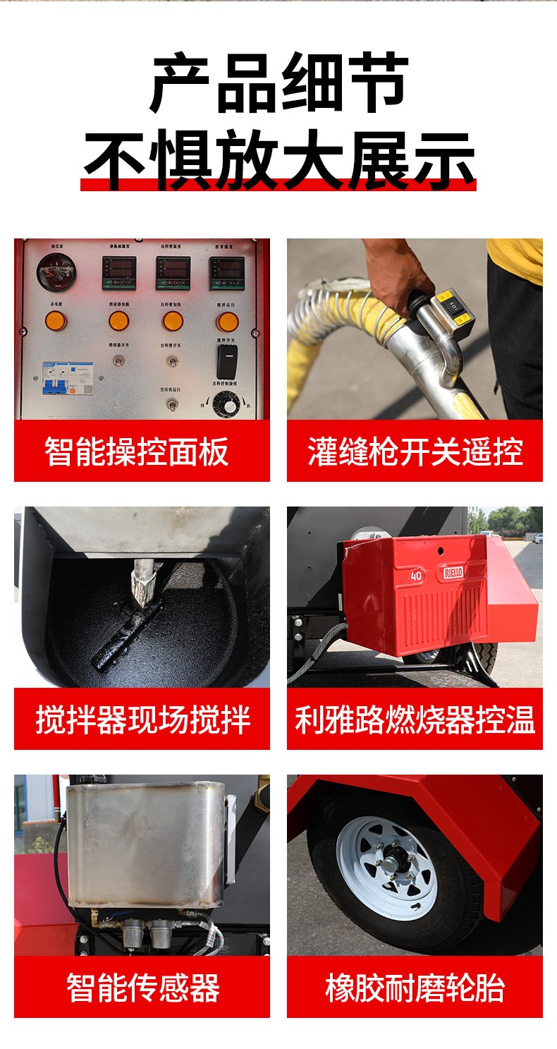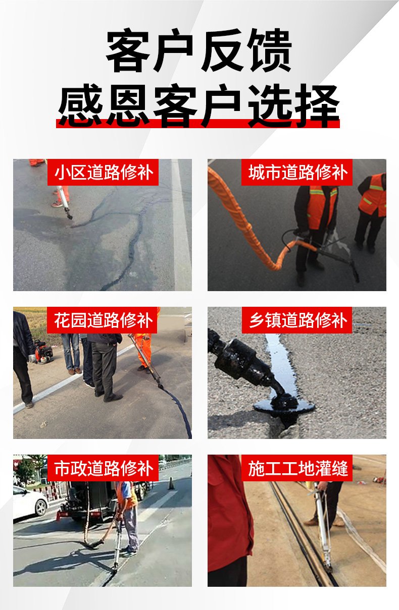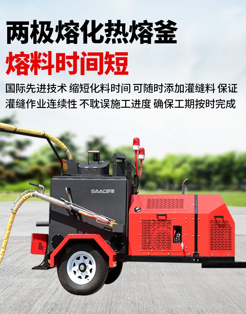 主要功能:通過(guò)一根單獨(dú)的加熱軟管將加熱融化后的橡膠瀝青基密封材料連續(xù)注入清理過(guò)的縫隙完成裂縫病害密封處理。輔助灌縫設(shè)備完成裂縫密封的設(shè)備有(開(kāi)槽機(jī)、熱風(fēng)槍),密封材料主要是瀝青基橡膠密封膠。