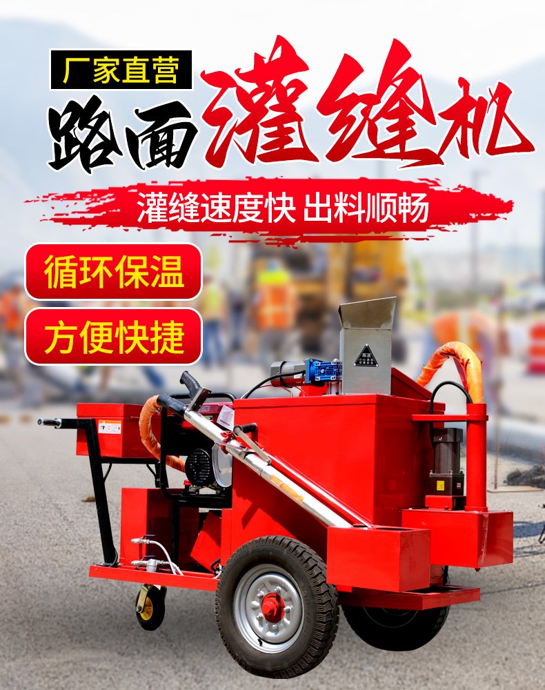 瀝青灌縫機100D熱熔采用導熱油夾套設計,可以加熱熔化普通瀝青,改性瀝青和專用裂縫密封膠,料泵利用壓力將熔化材料噴注到清理過的瀝青混凝土路面裂縫中進行修補。