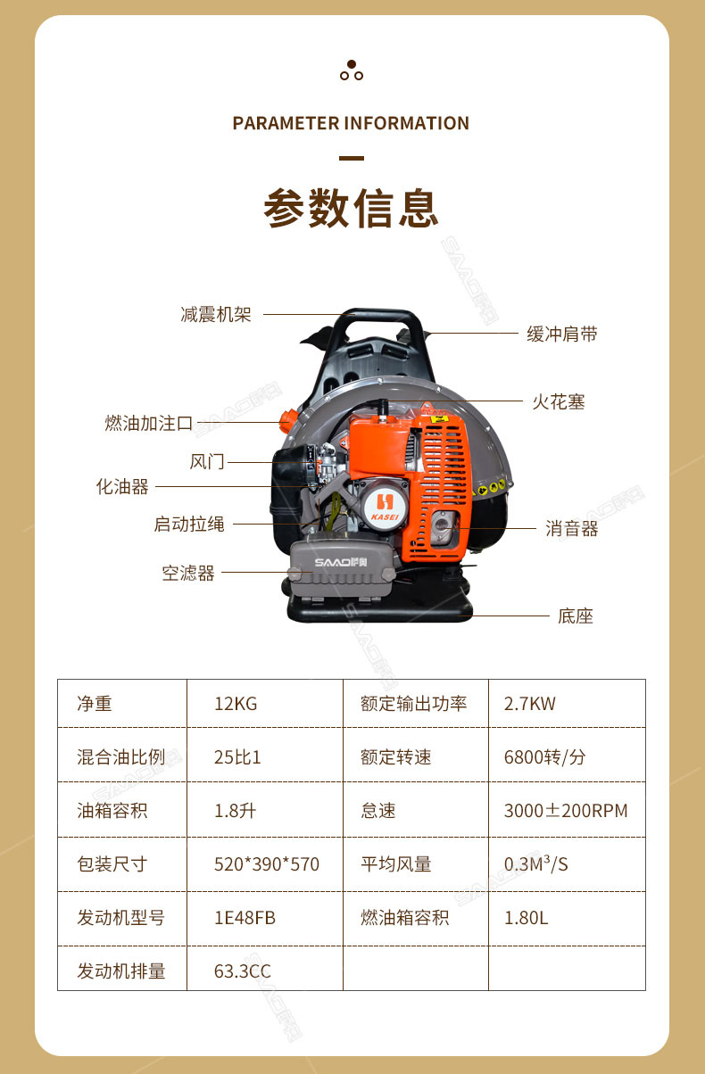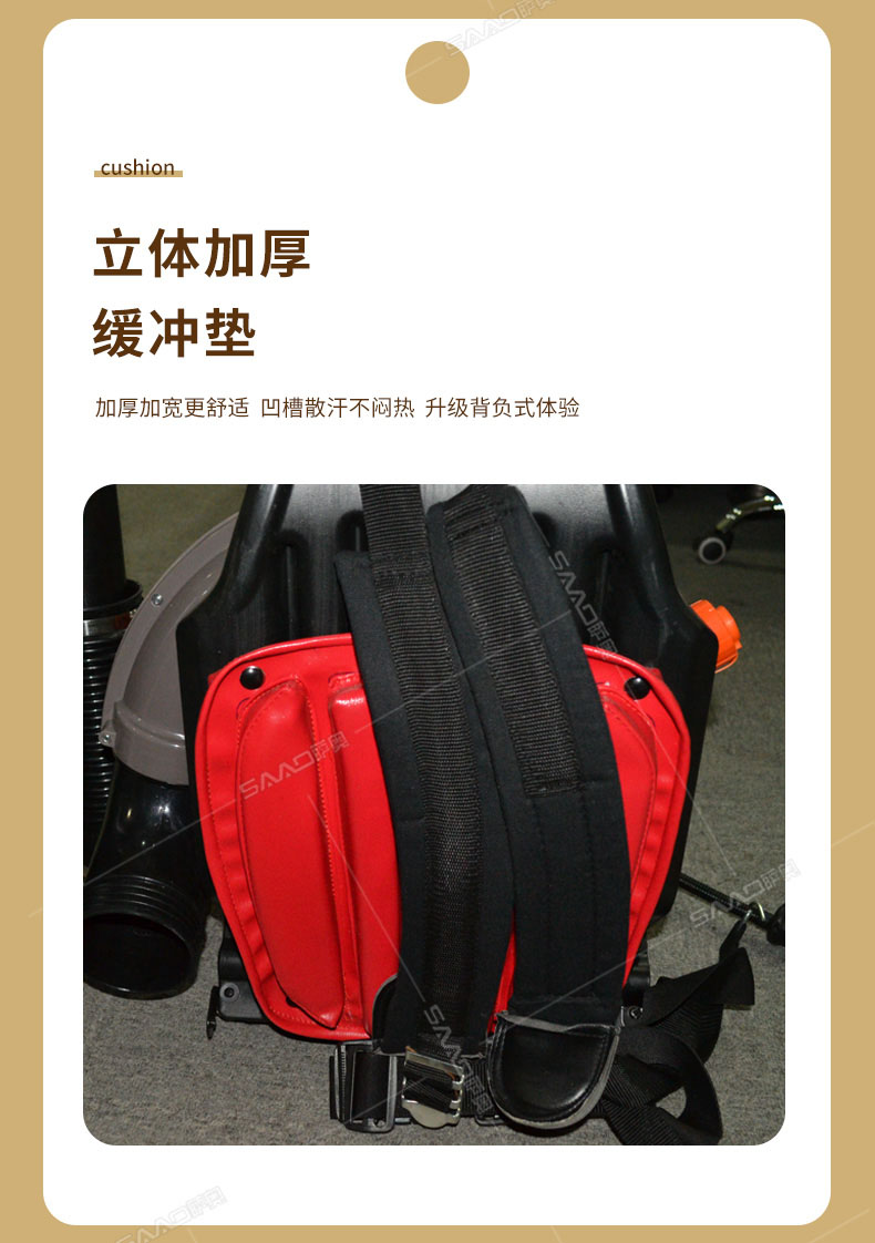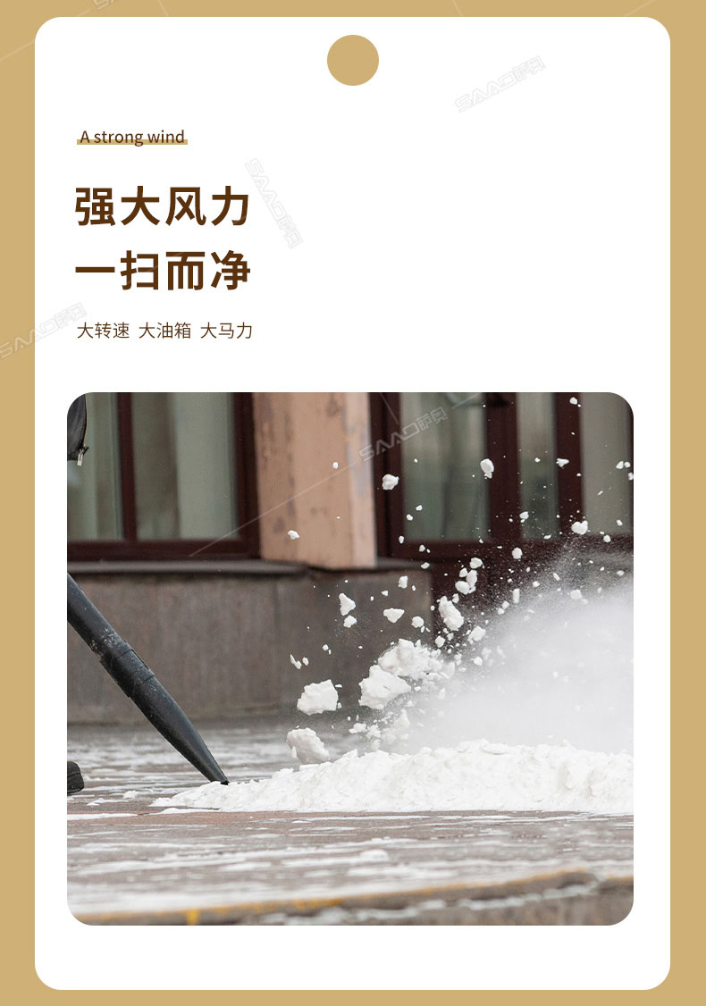 本機適用于修公路吹灰塵和吹雪,吹雪厚度達到15公分以上,鐵路上吹沙子,萊大柵溥膜上和露天的變壓器上吹雪(露天變壓器上吹雪時,需再配2.8米的伸縮噴風管)。公園內吹落葉,院