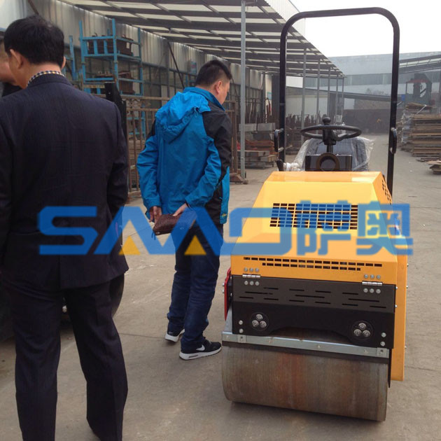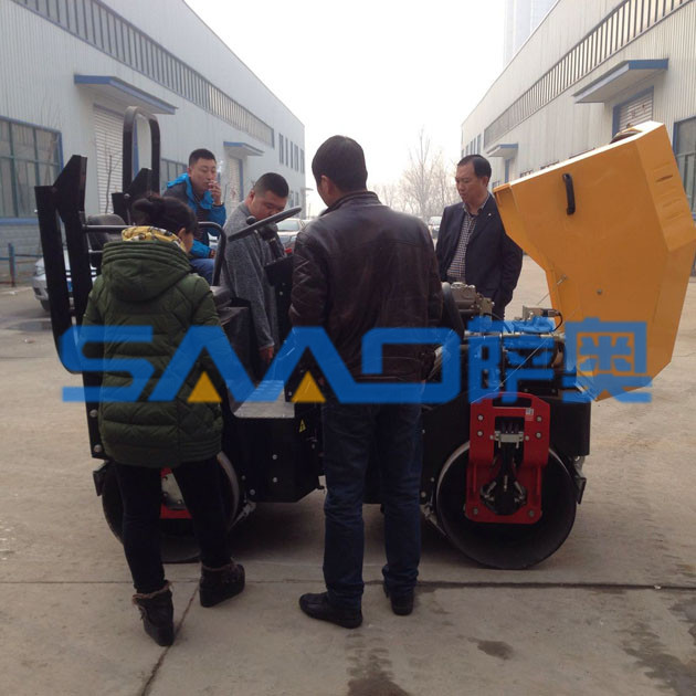 坐在駕駛座上的這位客戶,開動機器的發動機,認真的觀察壓路機的工作原理和基本的構造。