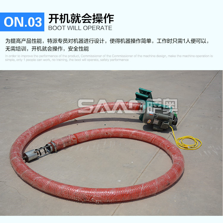 可輸送小麥、大豆、玉米、稻谷、高梁、塑料、樹脂、大米等顆粒。可水平、傾斜方式輸送。比任何運(yùn)送方式、運(yùn)送成本都低。它改變傳統(tǒng)運(yùn)送方式,解放勞動(dòng)力,方便適用,必將掀起新的輸送革命!