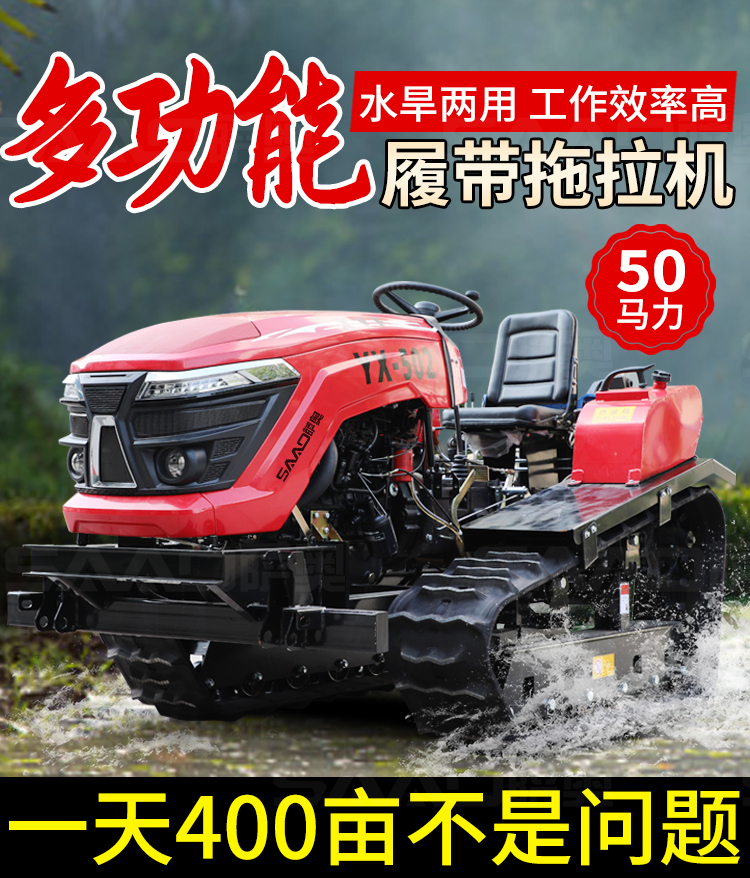 履帶拖拉機本機能完成耕、耙作業,具有碎土能力強、耕后地表平坦等特點。采用寬耕幅、對稱懸掛使輪跡全部覆蓋,有省時、省力、作業質量高成本低等特點。