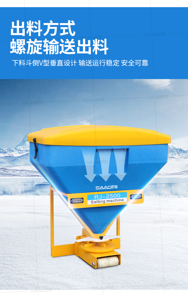 本產品用于道路、小區、廣場等地面積雪的融雪布撒,用以加速地面積雪融化,消除雪停自然融雪又結冰的風險。