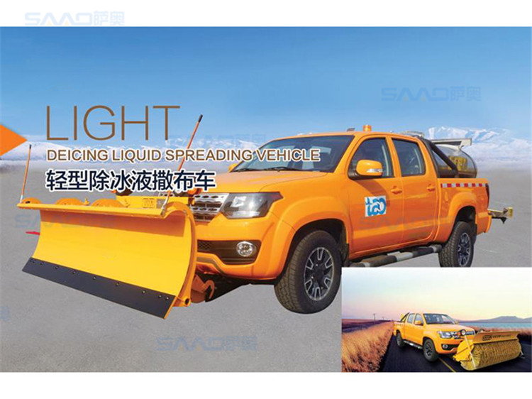 以皮卡車為底盤車配備前置除雪鏟、后置液體撒布機,專用于機場跑道等區域除雪融雪作業,也可換裝掃雪滾刷進行掃雪作業。