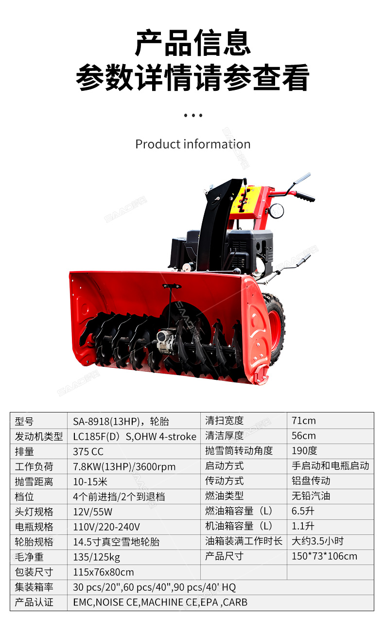 8918(13HP)手推式拋雪機(jī)(紅色)