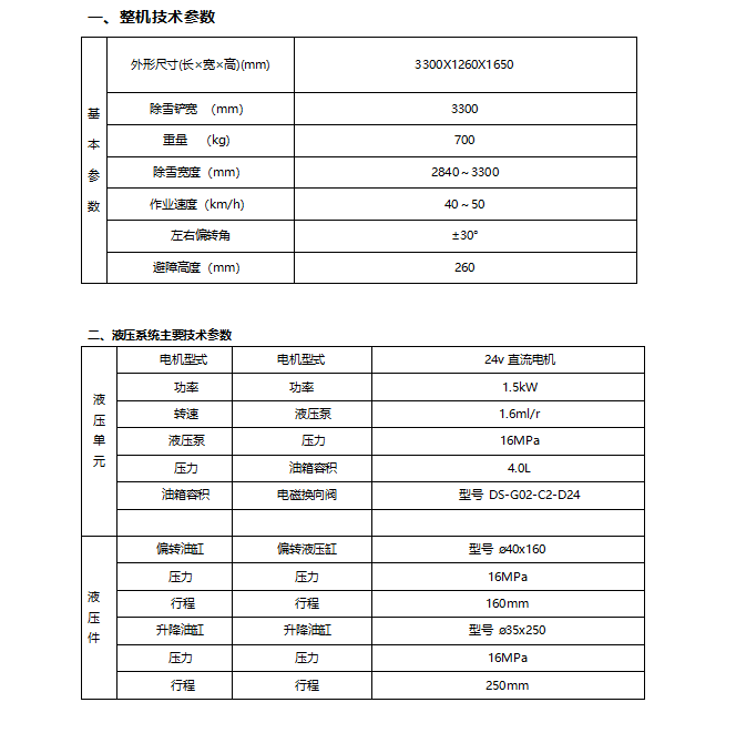 6、依路面橫坡坡度,除雪鏟鏟刀具有自動調節功能。