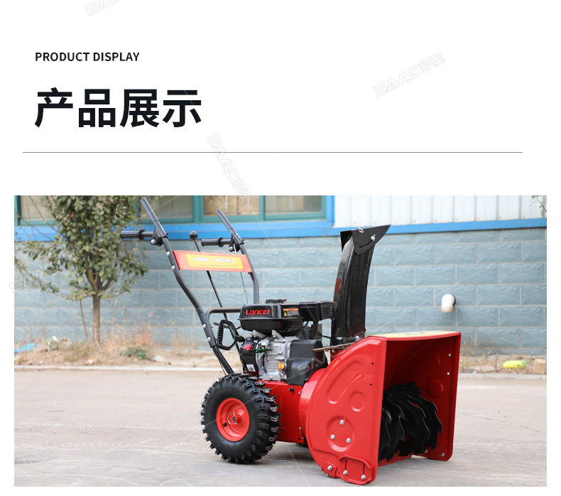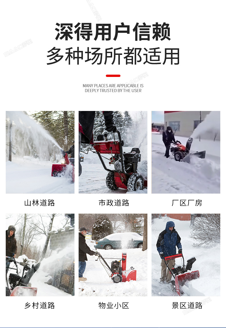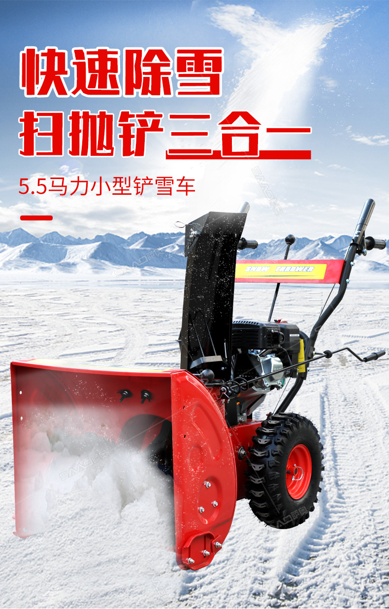 小型掃雪車由中型卡車或重型卡車、四缸汽車發動機、吸 雪管、鼓風機、排雪管、吸雪口、吸雪口液壓升降裝置、 旋轉式清掃刷、清掃刷連桿、固定架、 清掃刷液壓