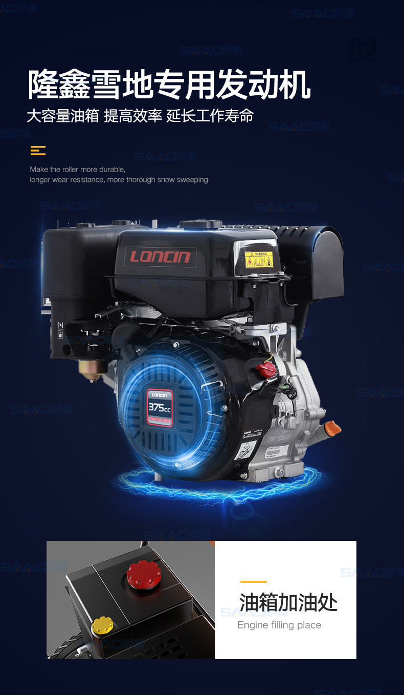 小型掃雪車由中型卡車或重型卡車、四缸汽車發動機、吸 雪管、鼓風機、排雪管、吸雪口、吸雪口液壓升降裝置、 旋轉式清掃刷、清掃刷連桿、固定架、 清掃刷液壓