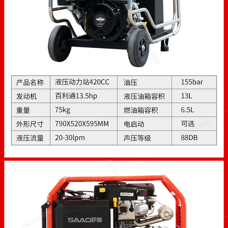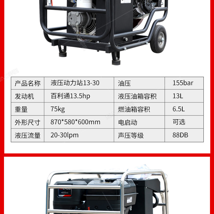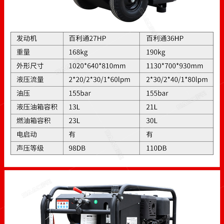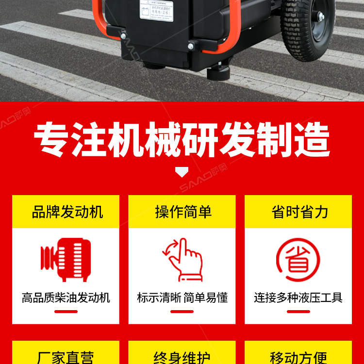 液壓動力站使用廣泛公路市政養護/燃氣自來水搶修/地震和消防救援作業等