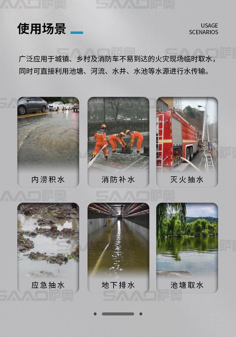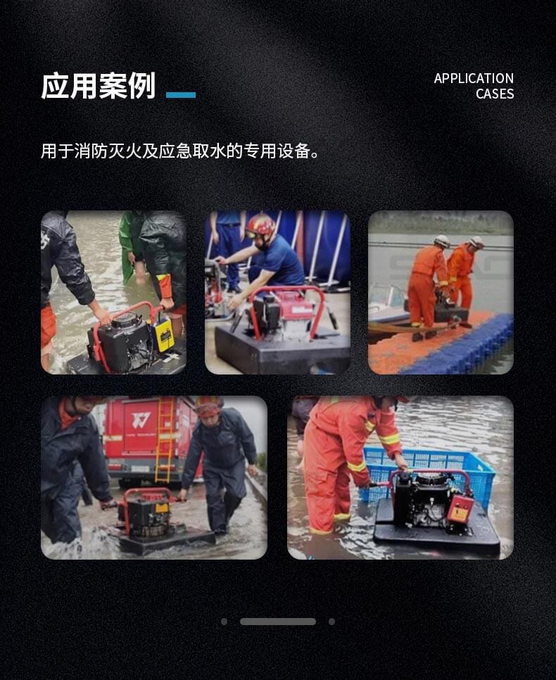 消防浮艇泵適合于城鎮、鄉村及消防車不易到達的火災現場或臨時取水,輕量化設計,聚氨酯原材料浮箱,耗油量低,操作簡單。