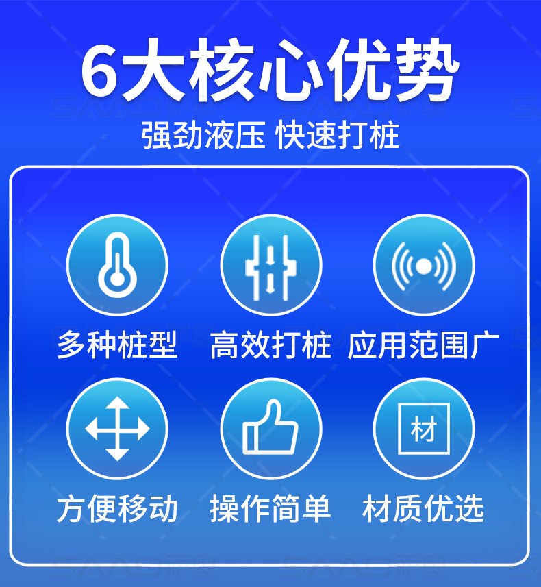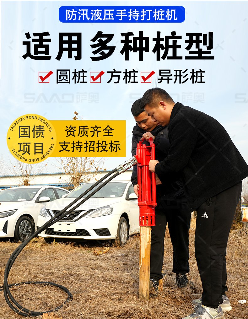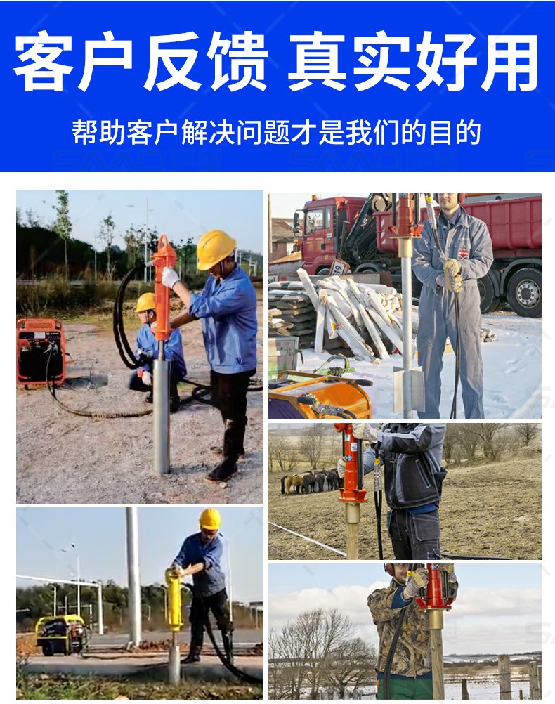艱苦的工作,需要強勁的設備! 樁桿、柵欄桿、路標,防撞欄,帳篷固定樁或其它樁桿,威平科技液壓打樁機都能快速地將您的樁打下,強勁的沖擊力令人印象深刻。 薩奧SADR-90液壓打樁