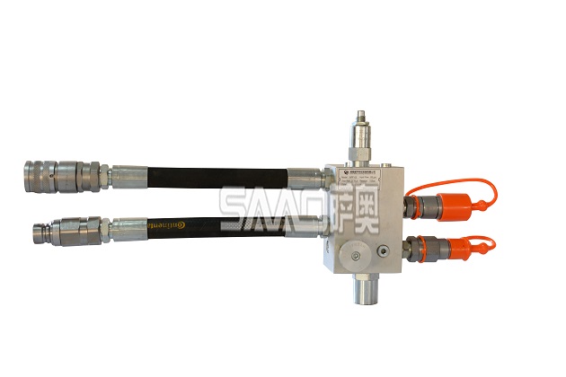 液壓分流閥用于連接液壓工具和一挖掘機、裝載機、工程車等承載設備的液壓動力輸出端。