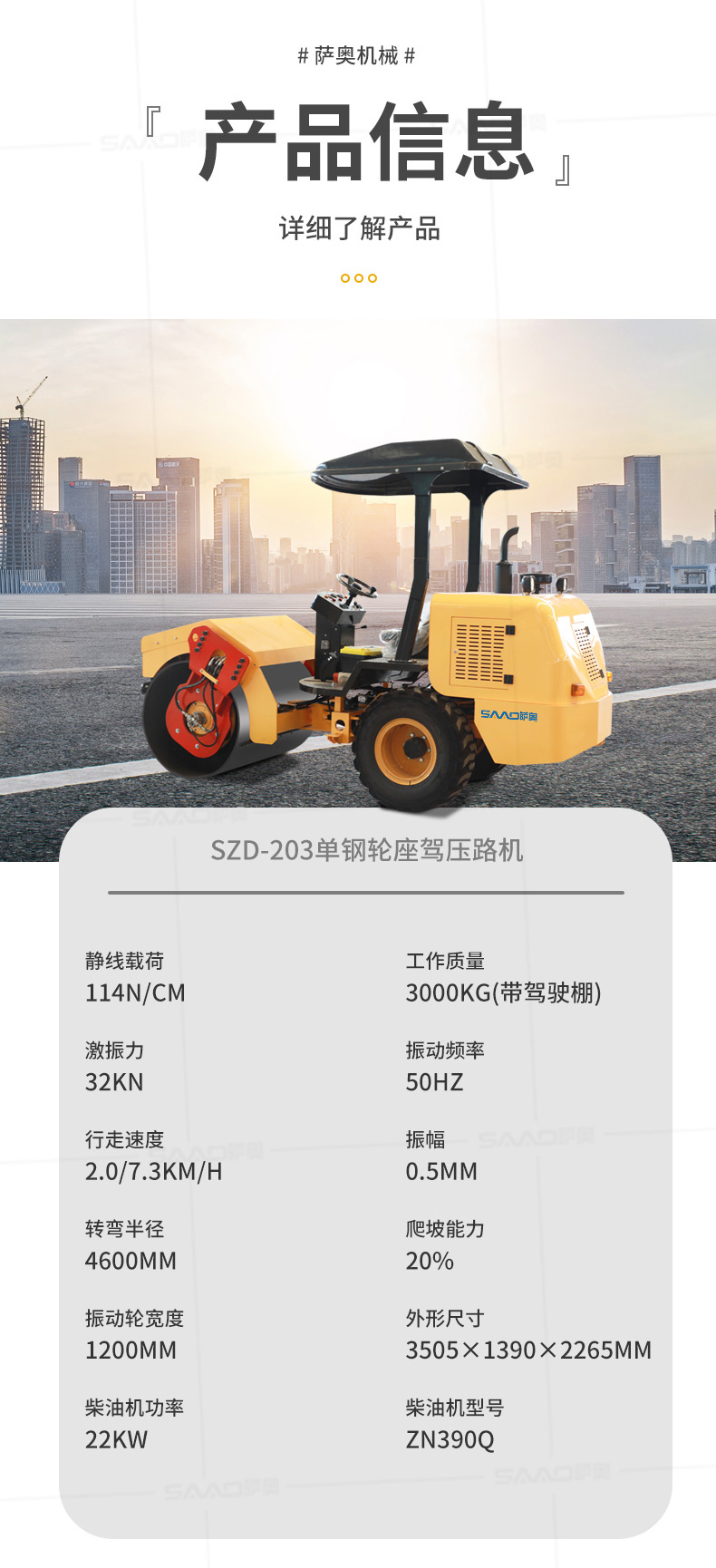 本產品是小型自行式振動壓路機,主要適用于壓實各種非粘結性土壤、沙土、礫石、砂石混合料、穩定土以及瀝青混凝土等建筑和筑路材料,尤其在鄉間道路、大型社區道路、水利建設